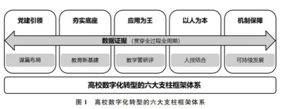六是数据证据。该支柱是指高校要持续强化“数据驱动、协同共享”的转型理念,将基于“系统汇报、数据说话”的理念贯穿数字化转型全周期全过程。教育数字化转型不是技术驱动下的盲目推进,而应建立在客观数据与真实证据的基础之上,确保战略规划、资源配置、教学改进与管理优化的科学性、针对性和可验证性。高校必须深刻认识数据作为新型生产要素和基础性战略资源的关键作用,系统构建覆盖教学、科研、管理、服务全链条的数据采集、治理、分析与应用体系,实现跨部门、跨平台的数据融通与共享。通过建立常态化的数据监测、诊断与反馈机制,推动“系统汇报、数据说话”成为决策常态,使政策制定、质量评估与改革迭代有据可依、有迹可循。同时,注重证据的积累与分析,将实践成效转化为可衡量、可追溯、可推广的转型经验,为数字化转型提供坚实的认知基础与持续改进的内生动力。