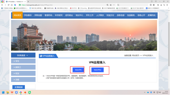 学校 VPN 系统为在校学生提供校外快捷访问校内资源的安全通道,目前仅支持网页版(WebVPN)访问,通过 WebVPN 可便捷访问校内专属资源,满足科研与办公需求: