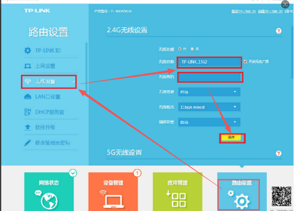 此外,还可根据需求配置无线信道、无线模式及频段带宽(默认均为 “自动” 模式,非专业用户不建议随意修改,以免影响网络稳定性),所有参数设置完成后,点击 “保存” 按钮生效。