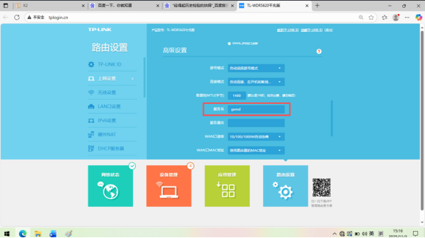 “服务名” 需根据宽带所属运营商,填写对应的字母标识,点击“保存”即可,对应关系如下: