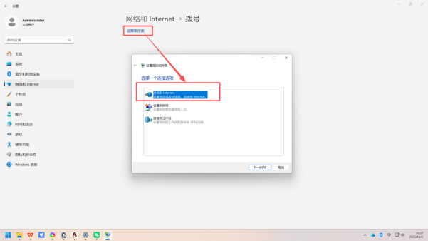 ◦ 第一步:在弹出的「设置连接或网络」窗口中,先选中「连接到 Internet」选项,点击「下一步」;