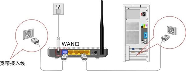 • 用网线一端连接墙面或弱电箱内的网络接口,另一端插入路由器的 WAN网口,(部分新的路由器无需人工区分 WAN 口与 LAN 口,插入任意网口即可,系统会自动识别接口类型)。