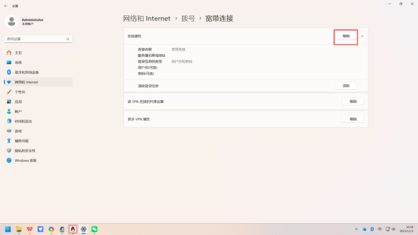 ◦ 进入编辑模式:在高级选项界面中,点击「编辑」按钮,打开「连接属性」设置页(示意图如下);