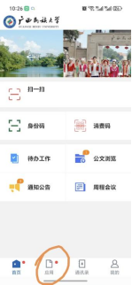 在手机应用端,打开 “广西民族大学” 官方 APP